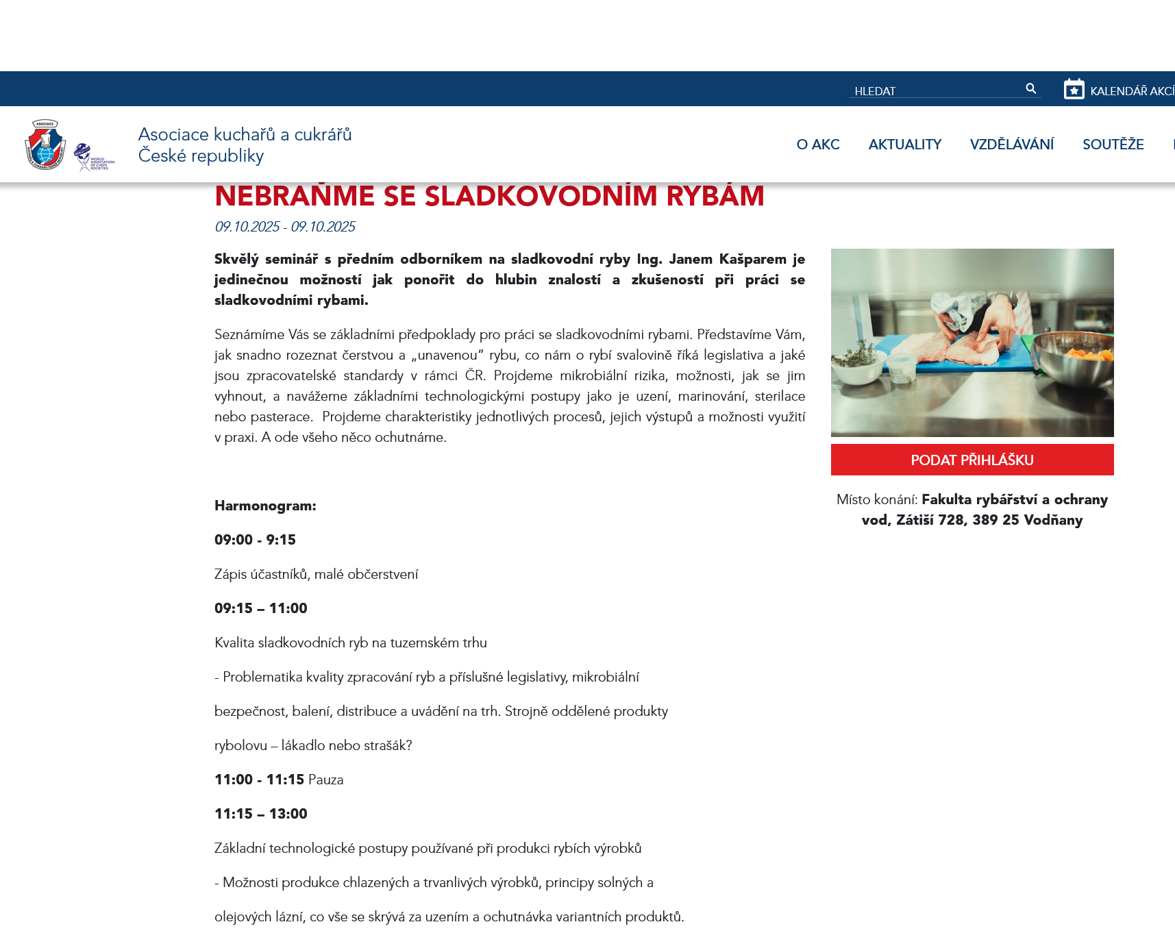 Místo konání: Fakulta rybářství a ochrany vod, Zátiší 728, 389 25 Vodňany